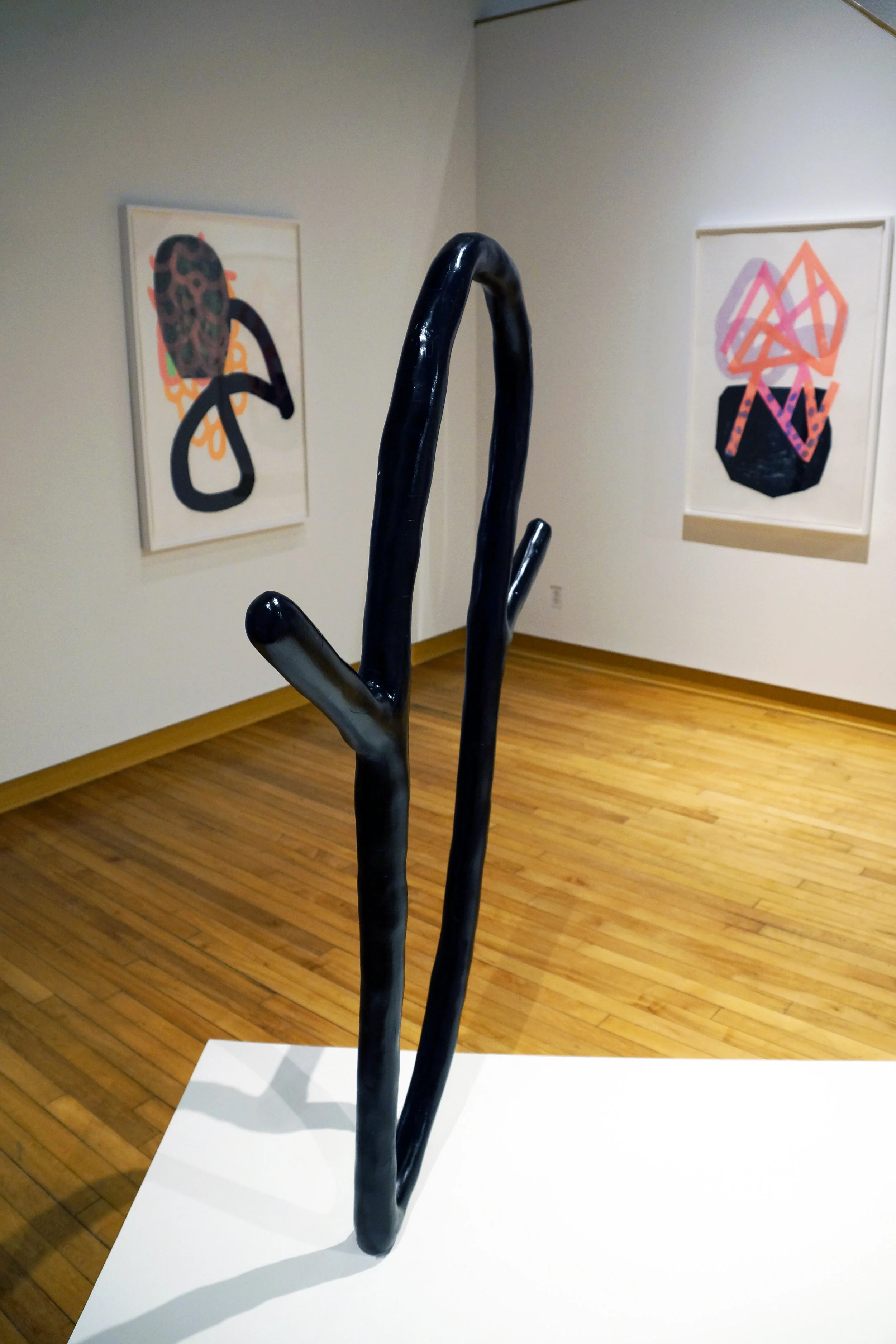 To insinuate oneself into the graphic universe of Jaime Angelopoulos is to accept to surrender to one's sensuality and to embrace one's vulnerability. Admittedly, as they offer themselves as autonomous while linked to one another as in a rhizome, the five drawings and ten sculptures exhibited may seem to adhere to exclusively formal concerns. However, behind their minimalist and abstract exterior, shines a powerful humanism. Sometimes dynamic and extroverted, at other times apathetic and introverted, the works invoke in succession hope and despair, movement and immobility, claiming, by their scale and verticality, an intimate relation to the body.