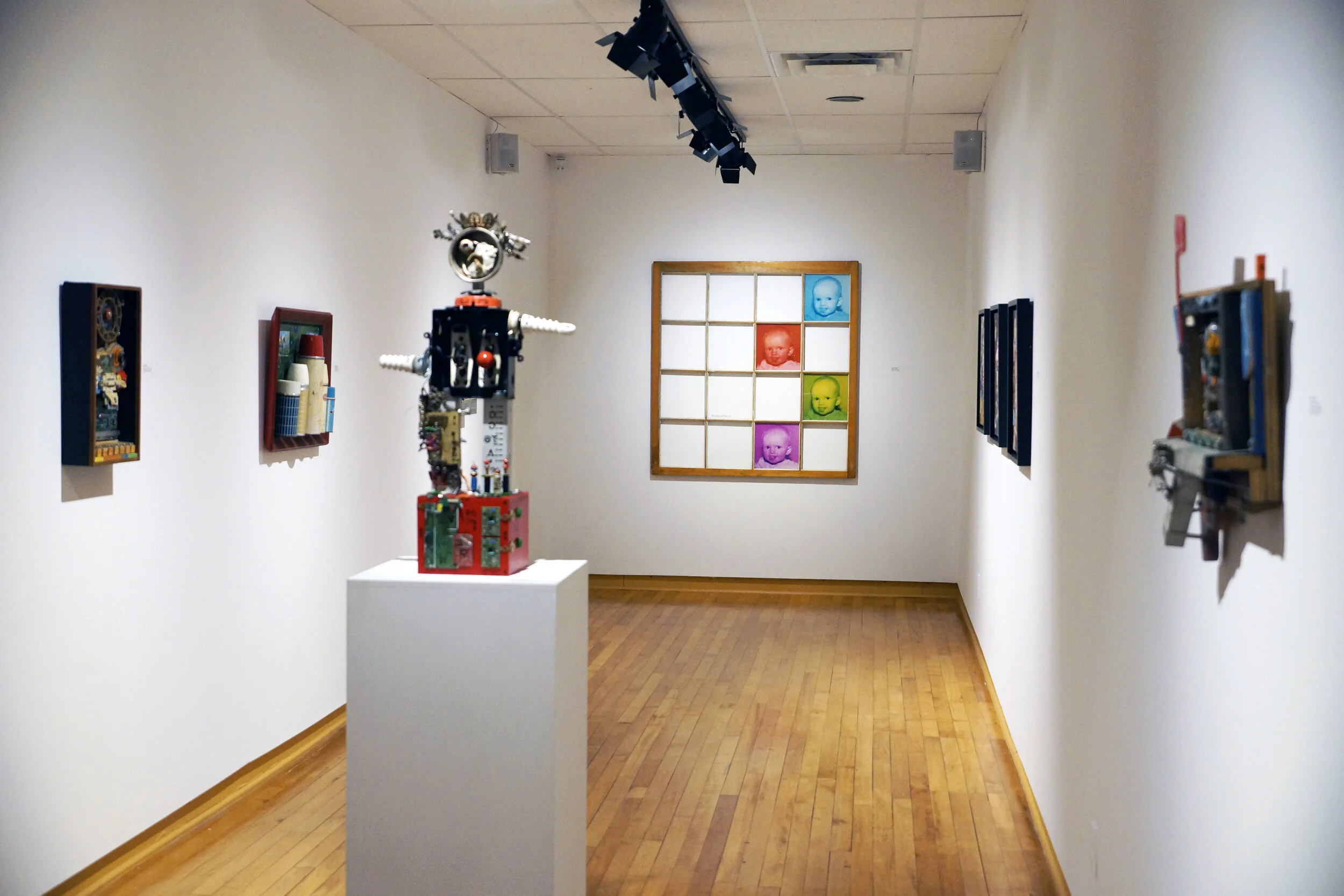 The title of this exhibition, We Come in Pieces, is a play on their preference for working in Collage and Assemblage. These basic methods of art-making generate images that are often disembodied and presented in disjointed or unreal conditions.