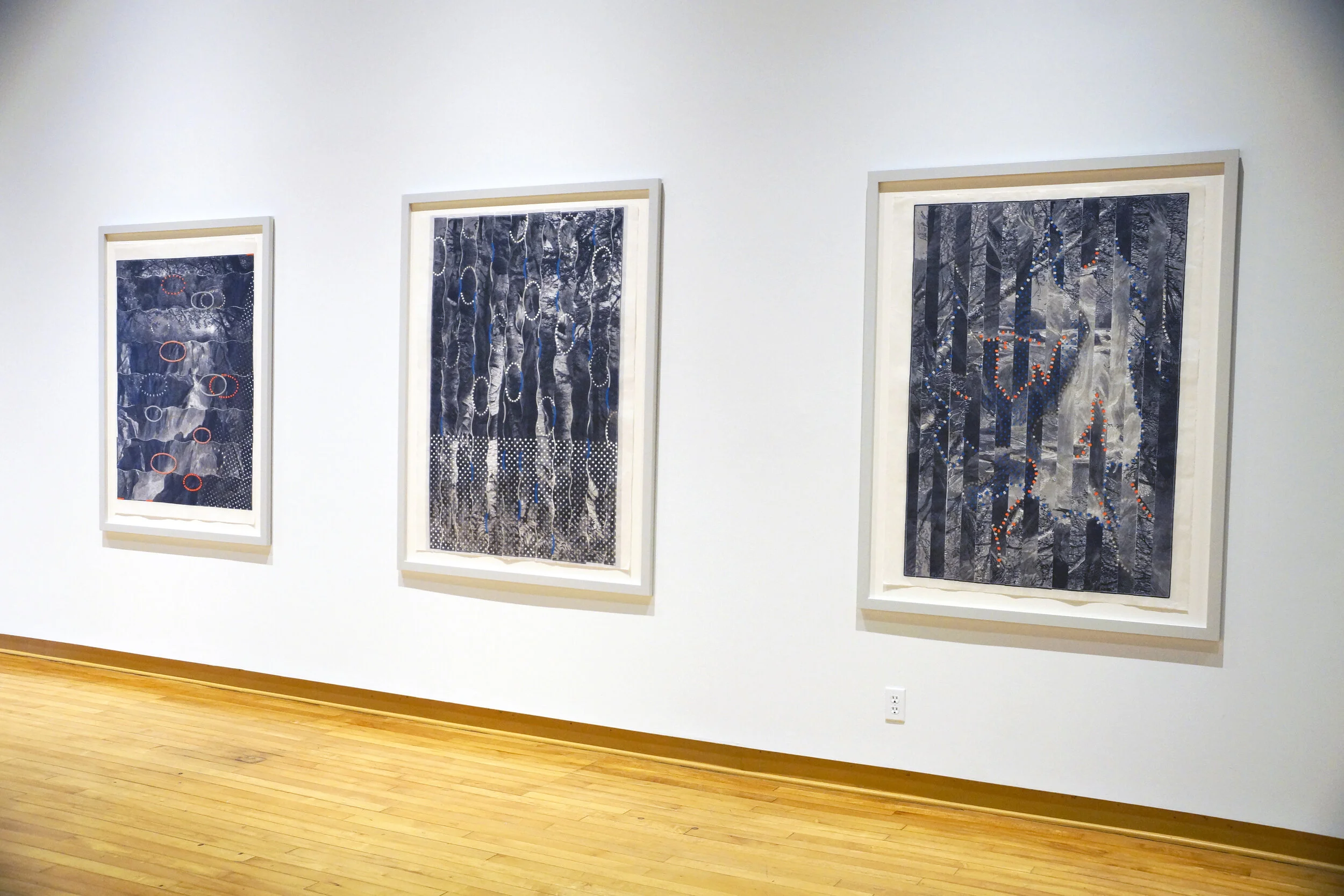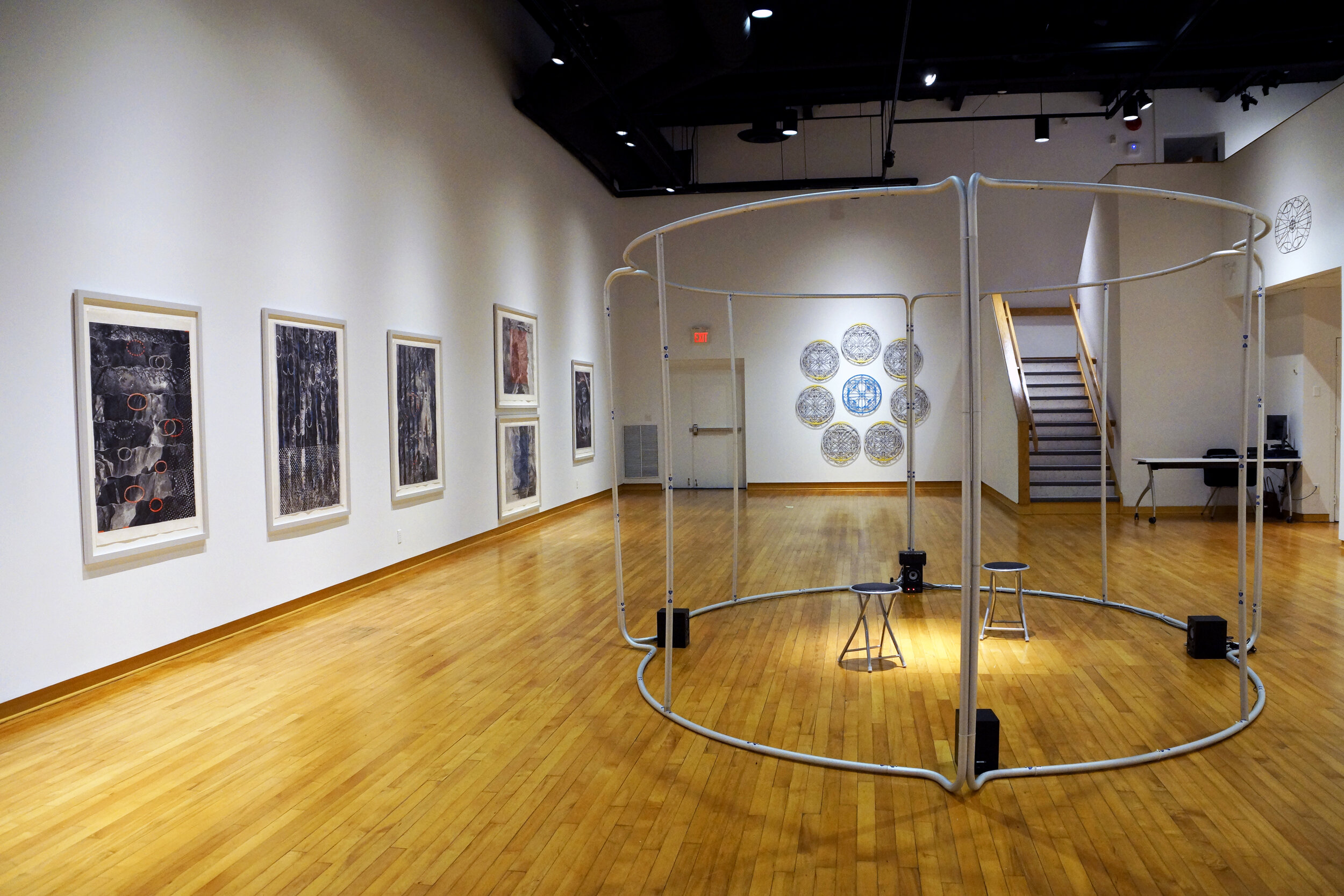Messagers’ Forum is an installation that poses questions about culture, nature, communication, and meaning. In a space of emblematic drawings, collaged landscapes, and recorded speech, we experience a setting where spoken exchanges between people in the community are suggested as being desirable and available to us, but also sometimes elusive and fleeting. It is a place where nature is presented as more than a backdrop, as if to describe a theatre for an unwritten drama.