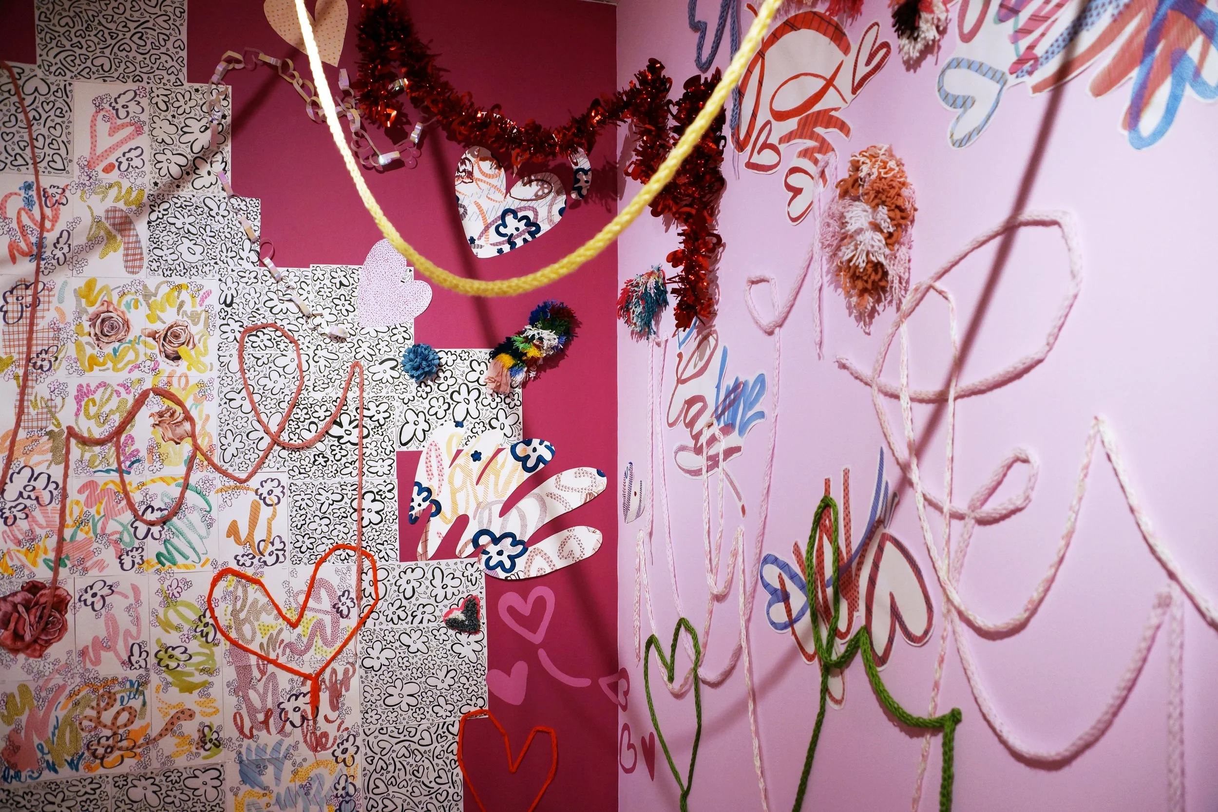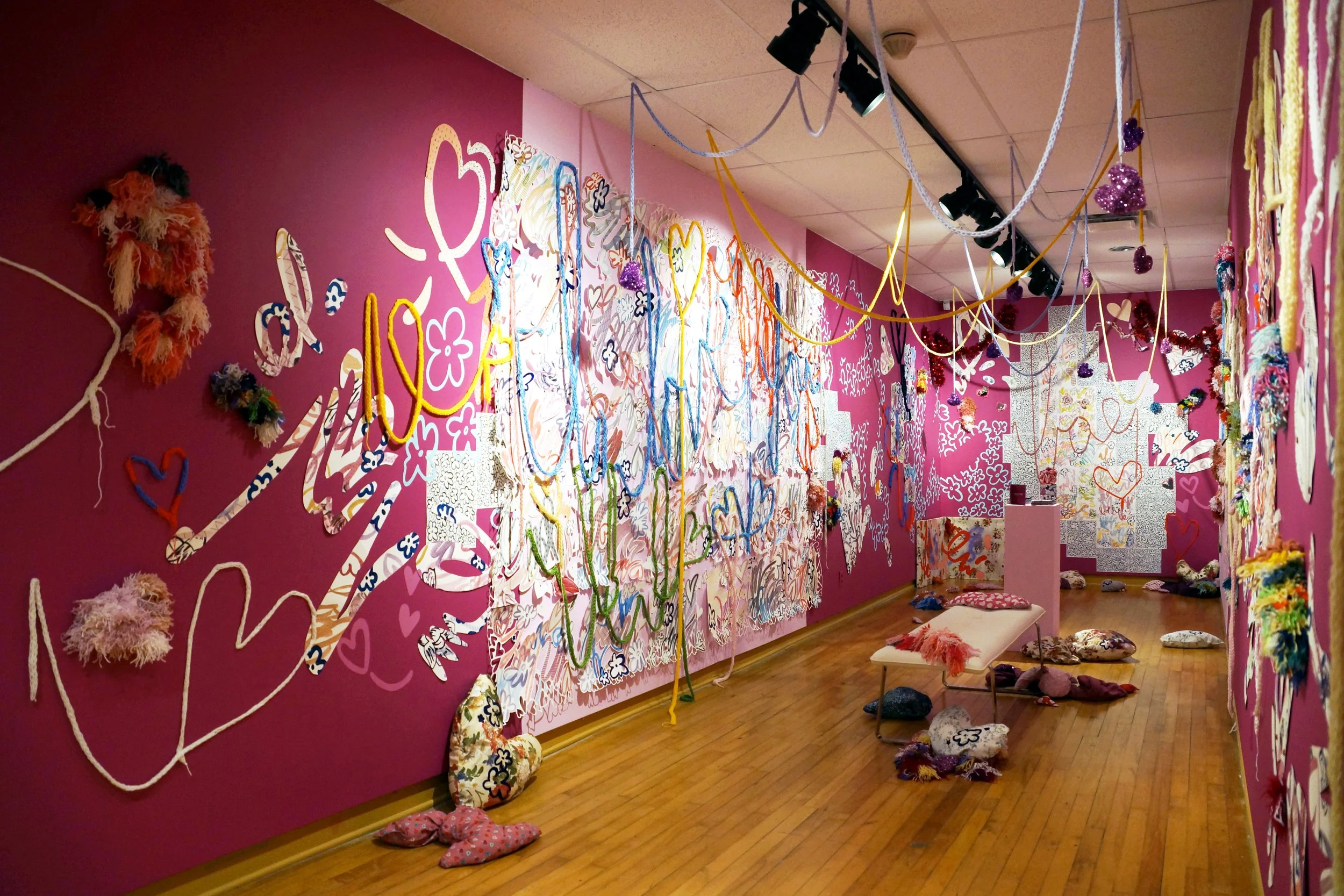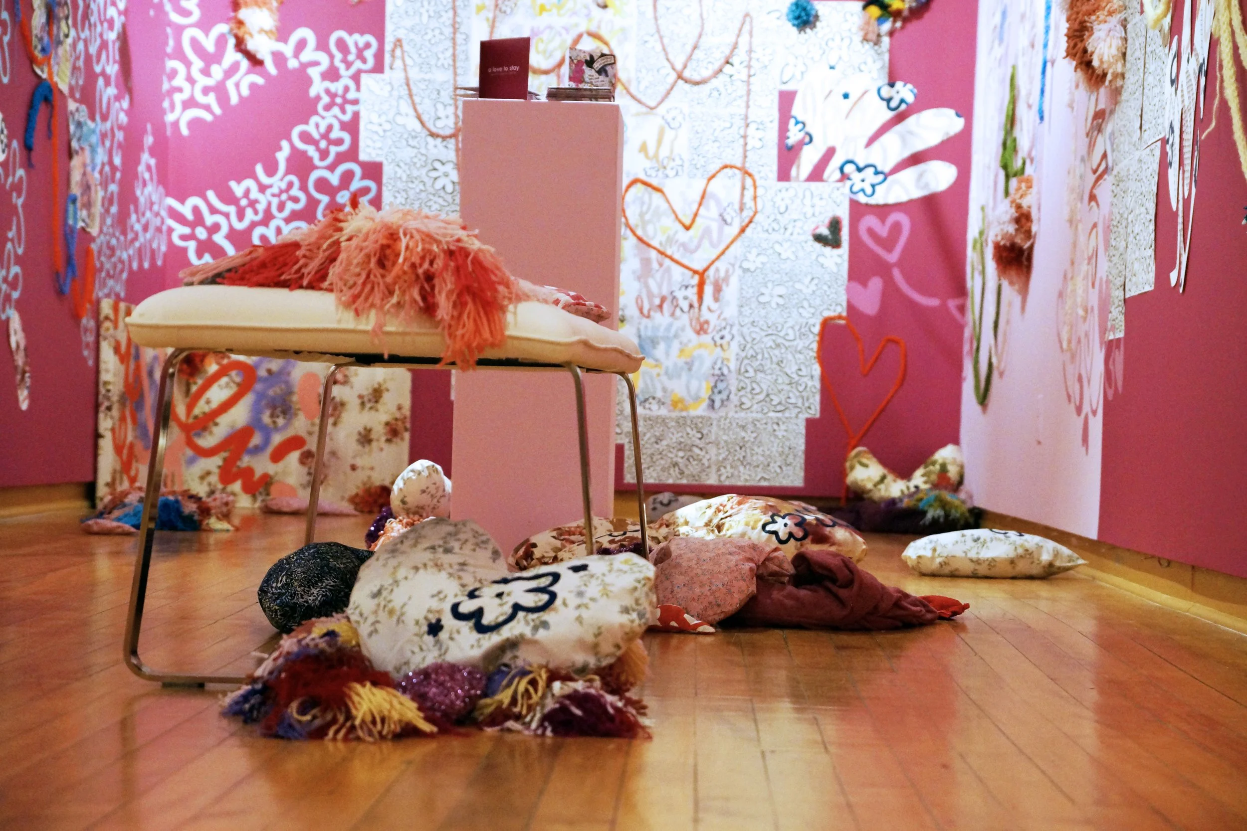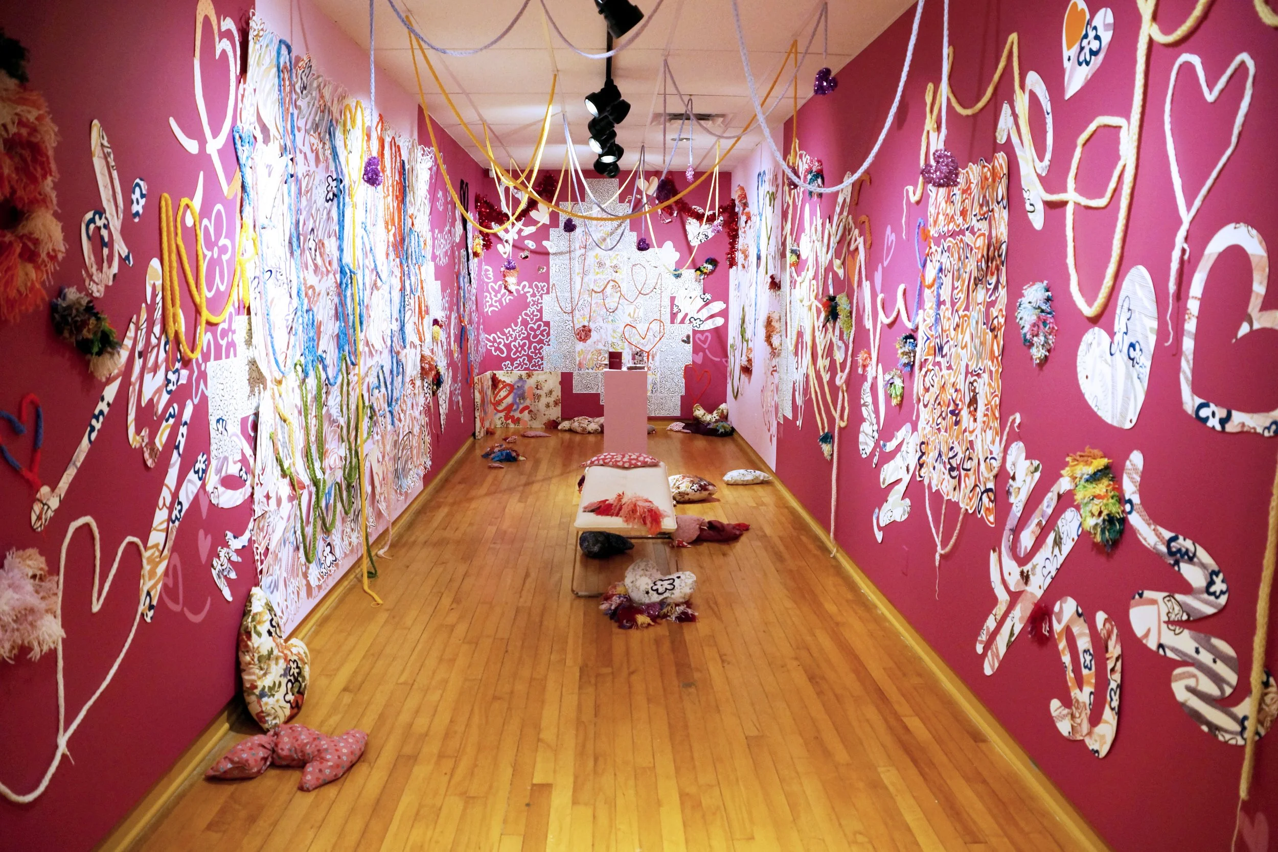 “a love to stay” conceptually explores the discourse of romantic relationships while considering the kitsch qualities of the perfect loving home, women’s work, and traditional images produced around idealized romantic relationships. This site-specific installation focuses on the nostalgia of past relationships and previous heartache while celebrating the adoration of the artist’s current romantic relationship like a dollar store on Valentine’s Day - confessionally emphasizing a love that is here to stay.