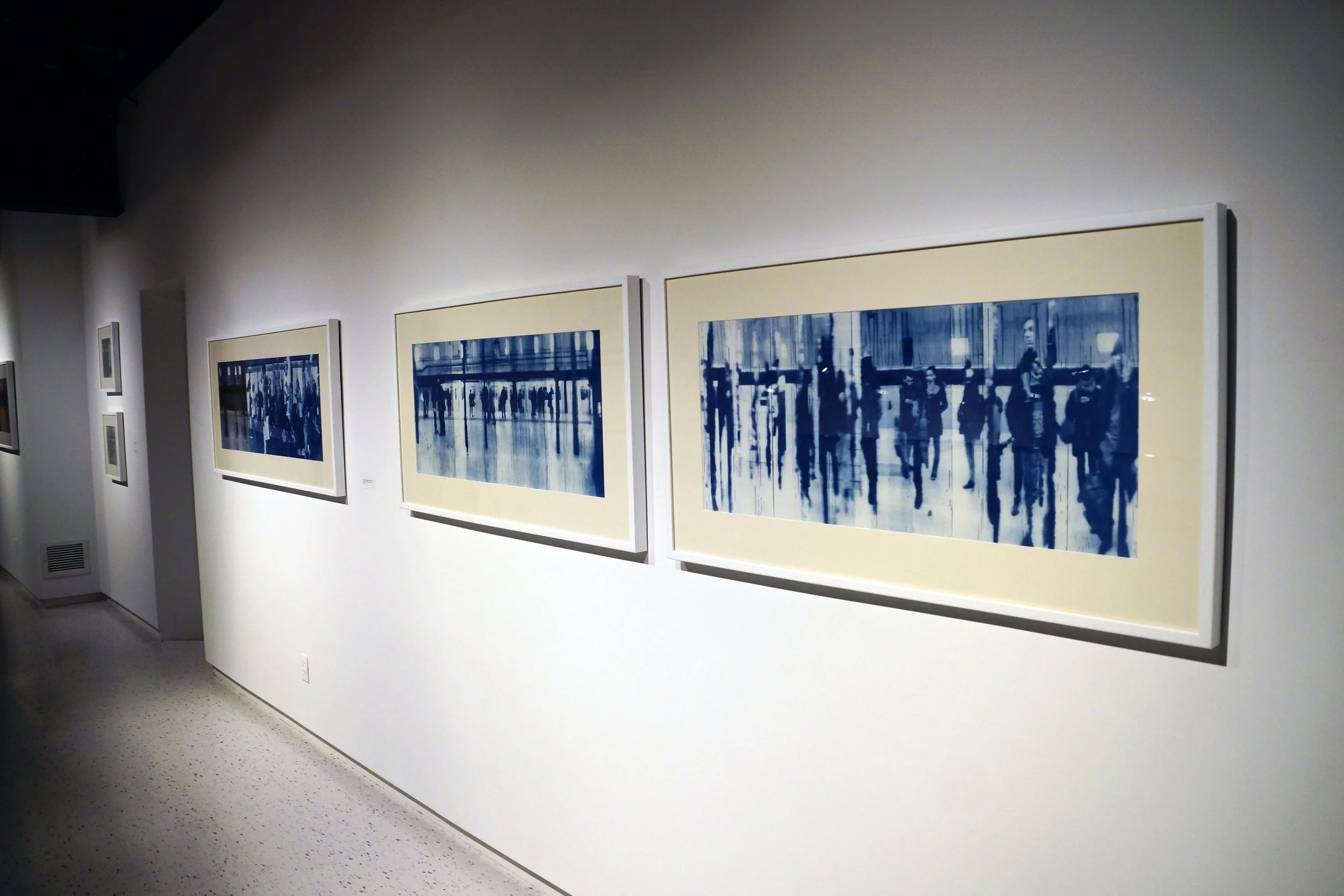 The works in this exhibition represent gaps in time that are chaotic, fragmented and isolating. Images have been shot on trains, subways, buses and in airports — spaces that are perpetually transitory. To be in these places means being between a point of departure and a destination; they are places where restlessness and a desire to be elsewhere are palpable.