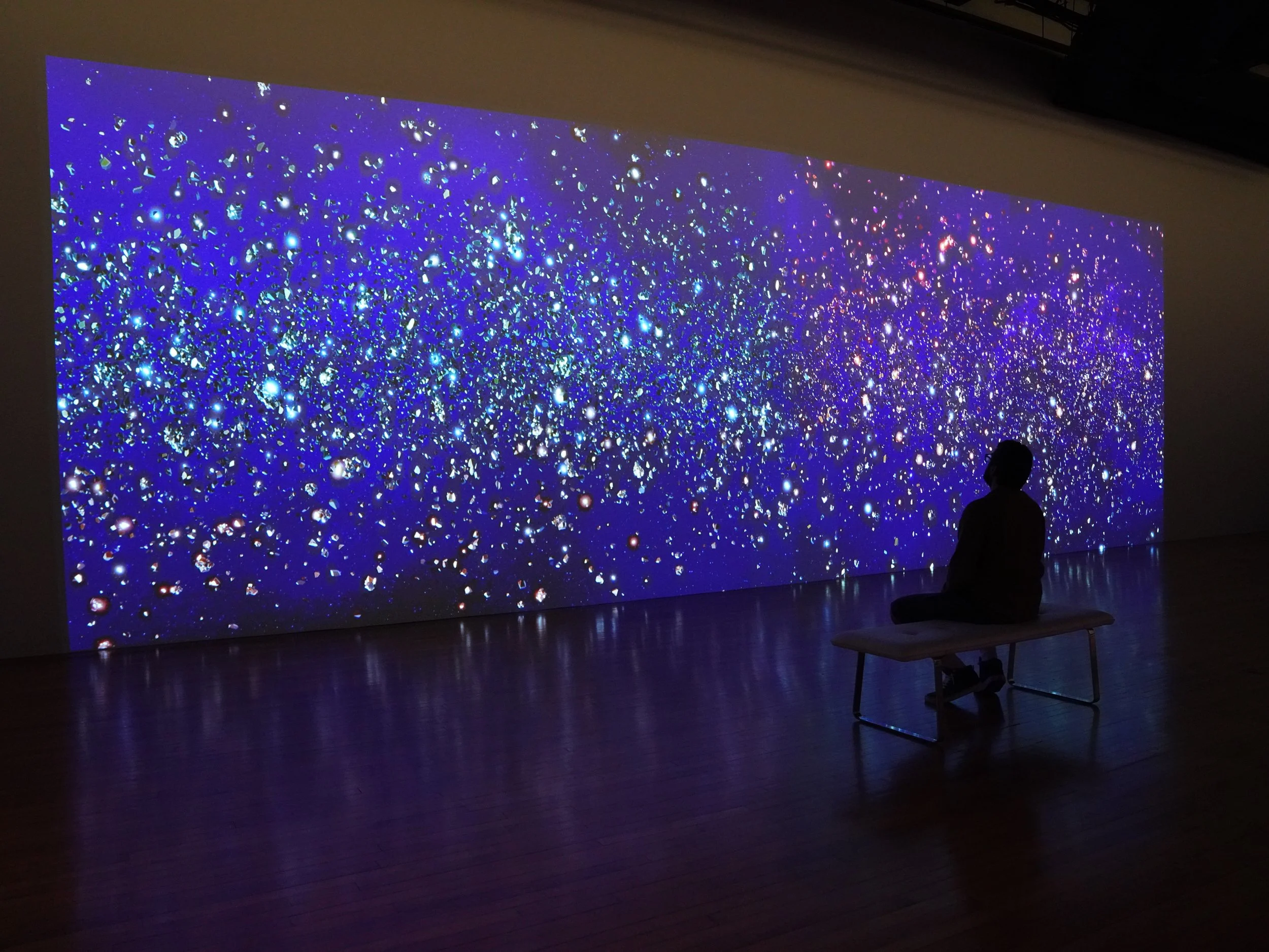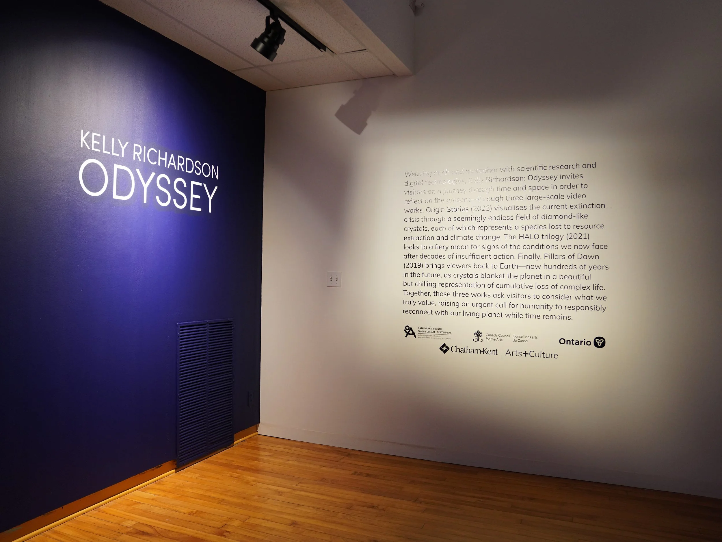 Weaving myth and metaphor with scientific research and digital technologies, Kelly Richardson: Odyssey invites visitors on a journey through time and space in order to reflect on the present—through three large-scale video works. Origin Stories (2023) visualises the current extinction crisis through a seemingly endless field of diamond-like crystals, each of which represents a species lost to resource extraction and climate change. The HALO trilogy (2021) looks to a fiery moon for signs of the conditions we now face after decades of insufficient action. Finally, Pillars of Dawn (2019) brings viewers back to Earth—now hundreds of years in the future, as crystals blanket the planet in a beautiful but chilling representation of cumulative loss of complex life. Together, these three works ask visitors to consider what we truly value, raising an urgent call for humanity to responsibly reconnect with our living planet while time remains.