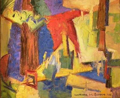 Hortense Gordon (1887 - 1961) showed great talent early, exhibiting with the Ontario Society of Artists while still in her teens. In 1916 she began work at the Hamilton Technical School as an assistant to John Gordon whom she married in 1920. She continued teaching at the HTS until 1951, the last twenty years as head of the Art Department, succeeding her husband. In the 1930’s she began experimenting with abstract painting, becoming one of the first abstract artists in Hamilton and probably in Canada. She was a member of the Canadian Society of Graphic Artists, the Royal Canadian Academy of Art and Painters Eleven. Julius LeBow, a local art gallery owner said of Hortense Gordon. “Totally involved with all aspects of art in Hamilton, she profoundly affected everyone who came into contact with her.” She was a trail blazer of the popularization of modern art in Canada.