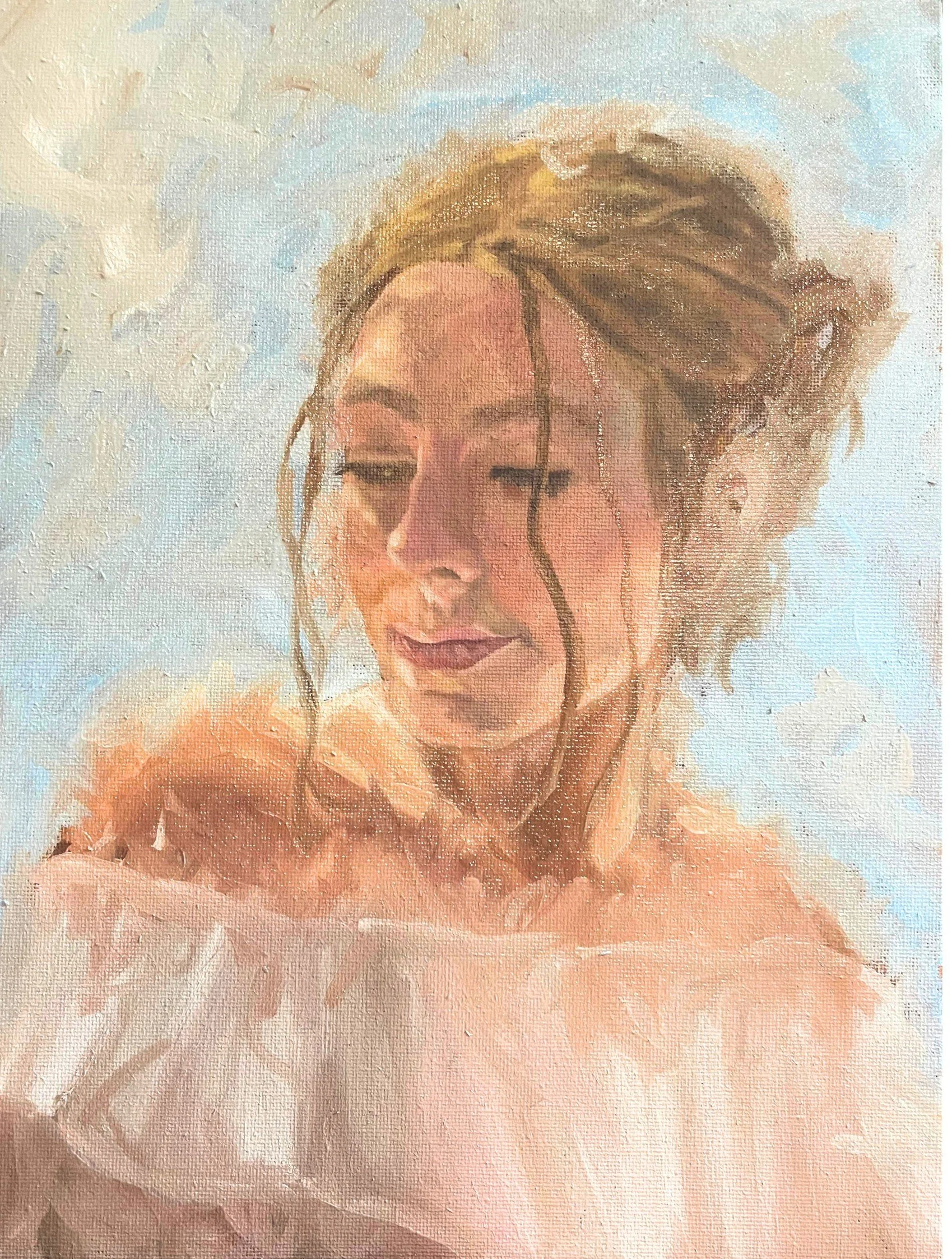 Her portrait Becoming the Self is deeply rooted in that journey. Begun during a time marked by self-doubt and inner struggle, the artwork evolved alongside the artist herself. As the image took form, it became a mirror—a space where care, self-love, and recognition slowly emerged, each gesture laid gently onto the surface by her own hand.