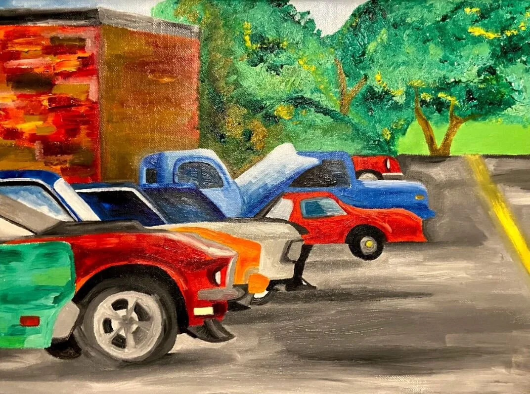 Nikole Martin Campbell Retro Fest, 2021. Oil painting. Ursuline College Chatham. Grade 12