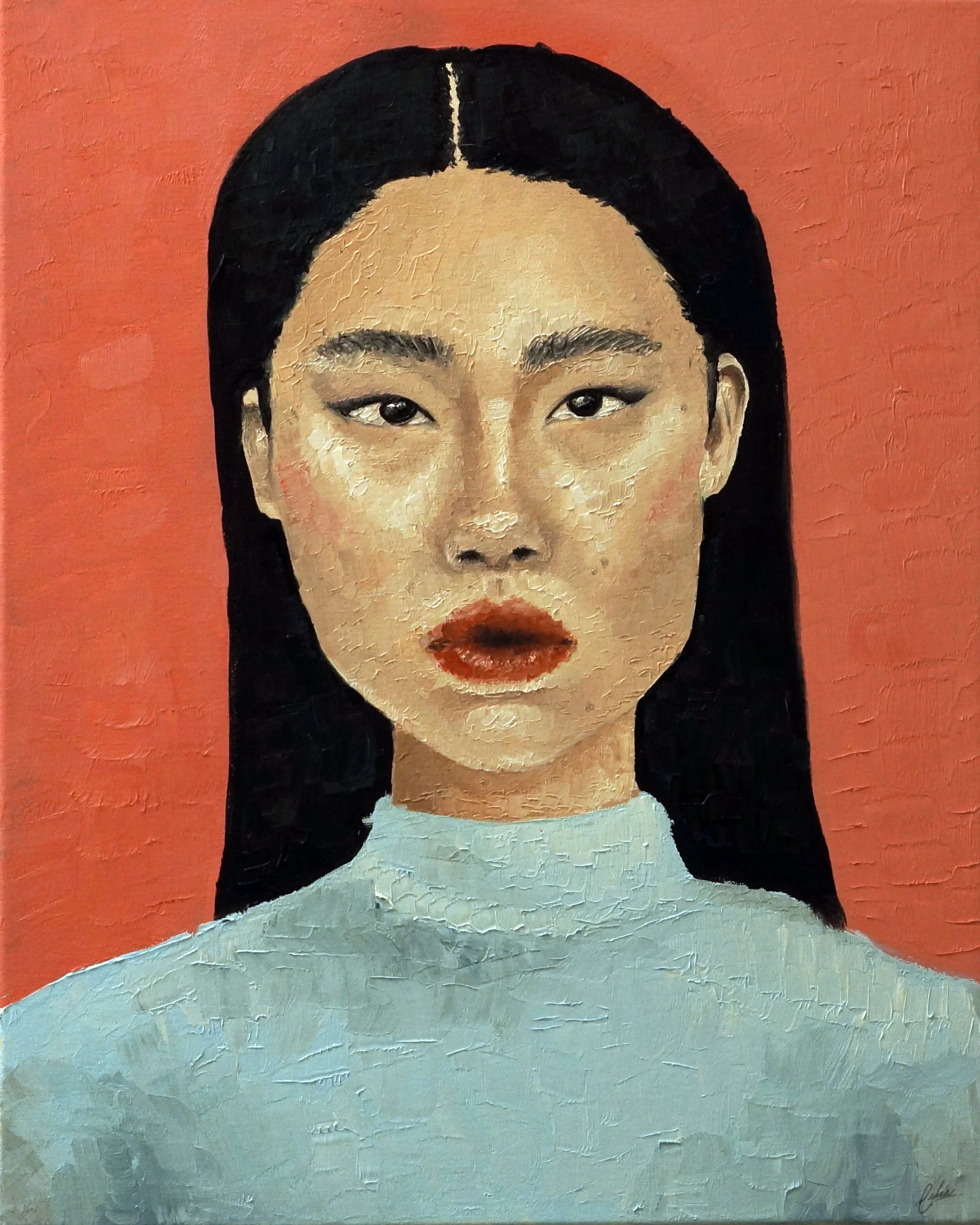 Celia MacDonald, Portrait of a girl, 2022. Oil on canvas. Chatham Kent Secondary School: Grade 11