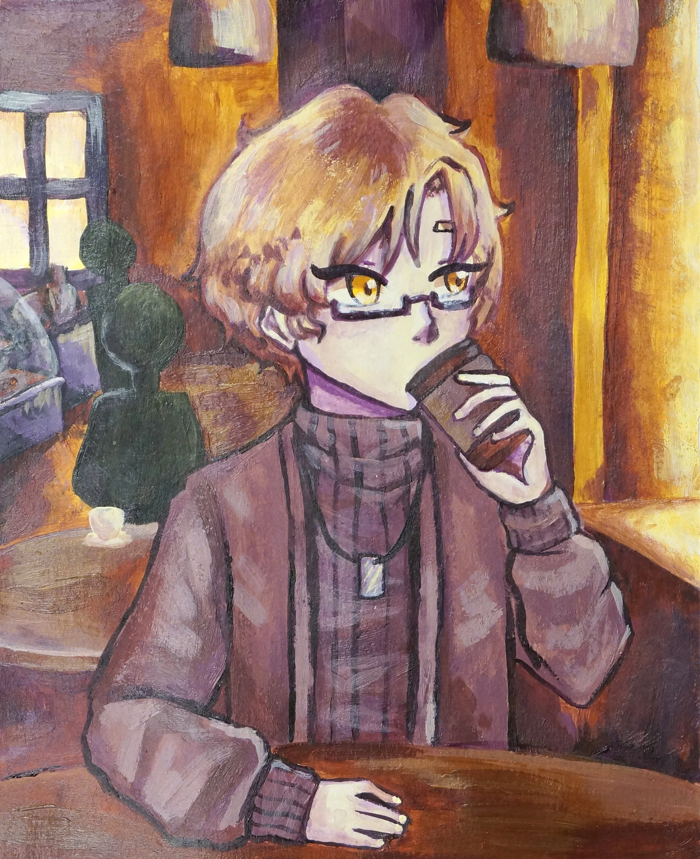 Megan Giang, Morning Coffee, 2022. Painting. Chatham Kent Secondary School: Grade 11.