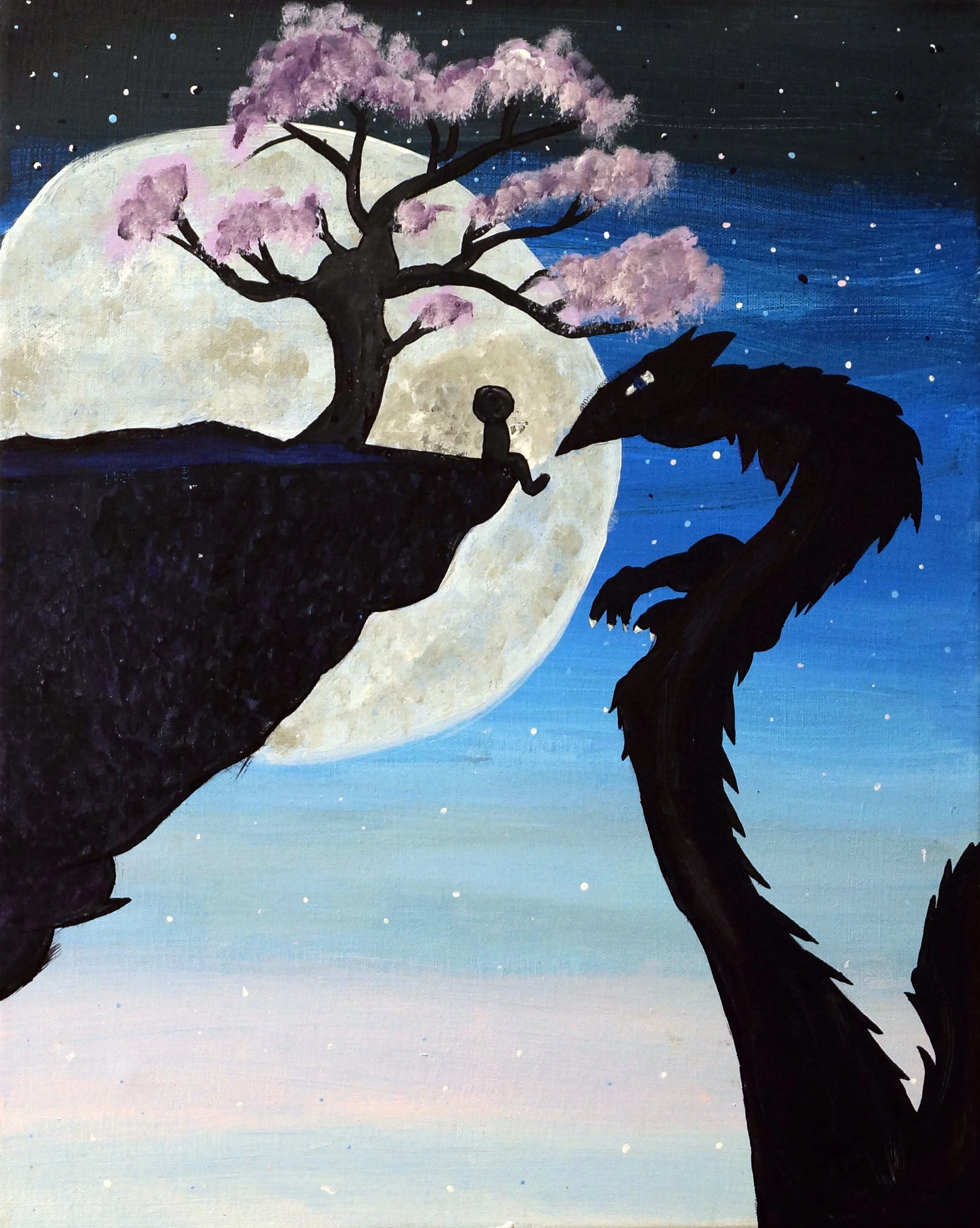 Myla Furlan, Lonesome Affection, 2022. Acrylic on canvas. Ursuline College Chatham: Grade 10.