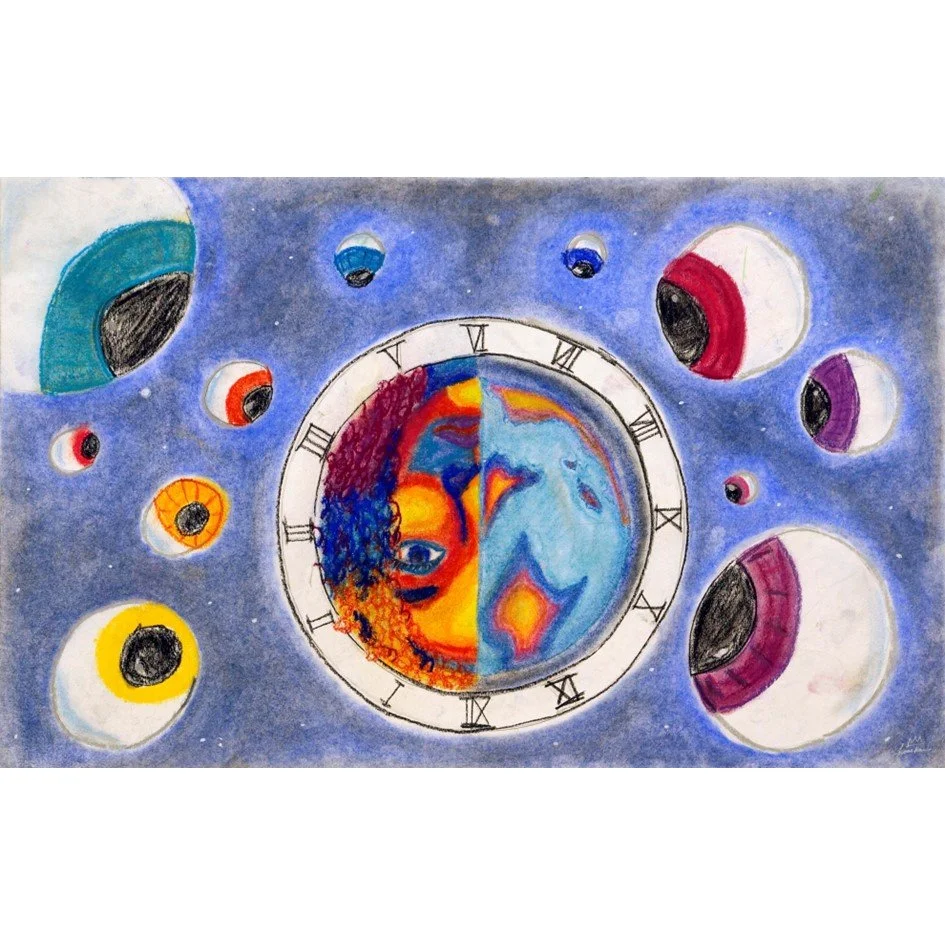 Temesha Prince, Eyes of Time. pastel on paper. Wallaceburg District Secondary School. Grade 11