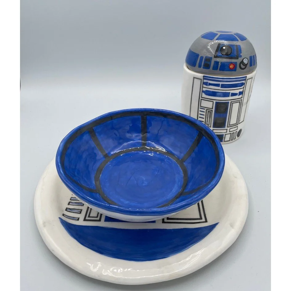 Kaylee De Haan, R2-D2 Dinnerware Set, Ceramics. Chatham-Kent Secondary School. Grade 12