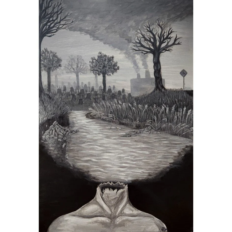Myla Furlan, Fear For Our Future. acrylic on canvas. Ursuline College Chatham. Grade 11